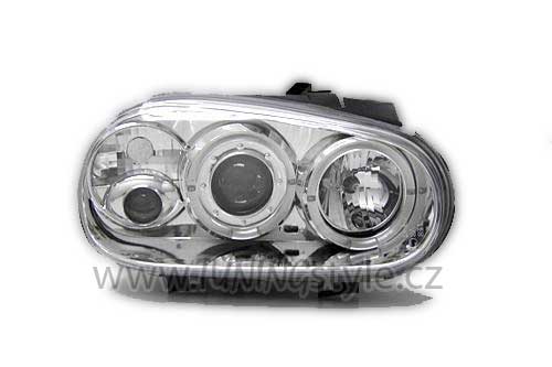 »  Osvětlení vozu  »  Světla a čirá optika  »  Přední světla  »  Přední světla angel eyes VW Golf 4 - chromové