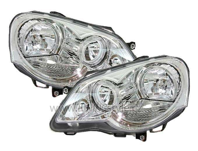 »  Osvětlení vozu  »  Světla a čirá optika  »  Přední světla  »  Přední světla angel eyes VW Polo 9N3 chromové