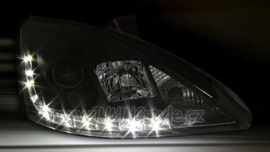 Přední světla čirá s pruhem LED světel podle vzoru nových modelů AUDI