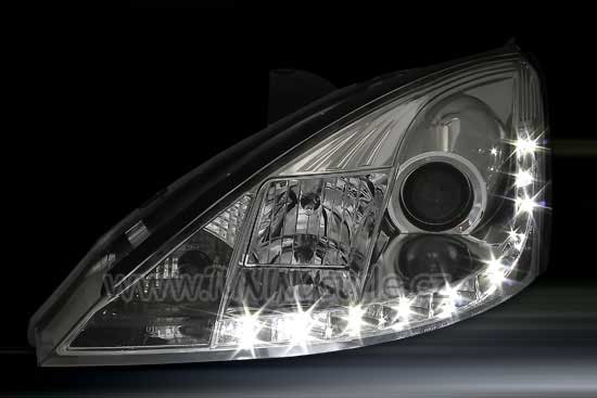 Přední světla čirá s pruhem LED světel podle vzoru nových modelů AUDI