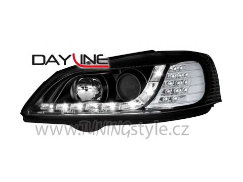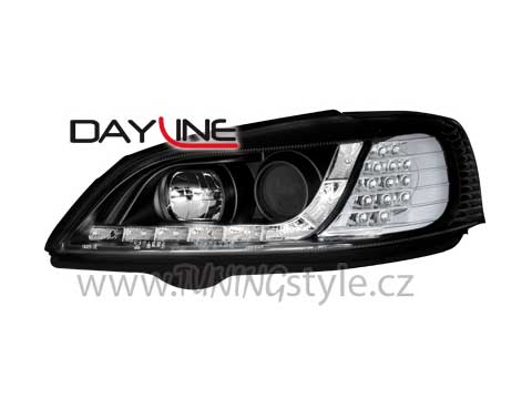 Přední světla čirá s pruhem LED světel podle vzoru nových modelů AUDI Kvalitní světla od renomovaných výrobců. Cena za sadu levé + pravé. Celý popis