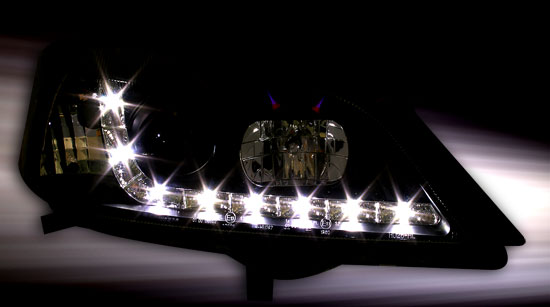 Přední světla čirá s pruhem LED světel podle vzoru nových modelů AUDI Kvalitní světla od renomovaných výrobců. Cena za sadu levé + pravé. Celý popis