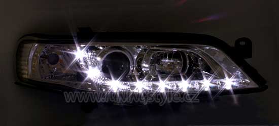 Přední světla čirá s pruhem LED světel podle vzoru nových modelů AUDI