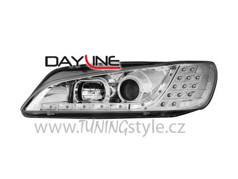 Přední světla čirá s pruhem LED světel podle vzoru nových modelů AUDI Kvalitní světla od renomovaných výrobců. Cena za sadu levé + pravé. Celý popis