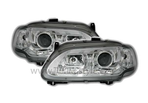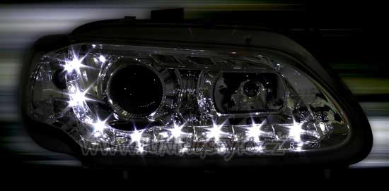 Přední světla čirá s pruhem LED světel podle vzoru nových modelů AUDI