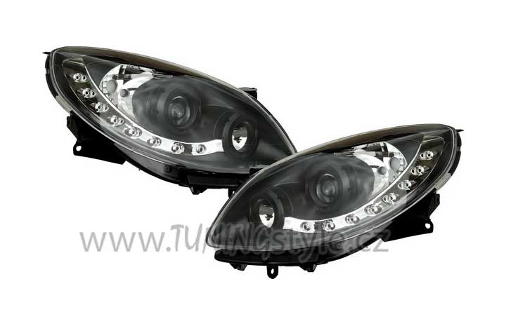 Přední světla čirá s pruhem LED světel podle vzoru nových modelů AUDI