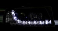 Přední světla čirá s pruhem LED světel podle vzoru nových modelů AUDI