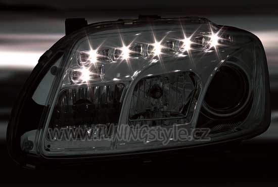 Přední světla čirá s pruhem LED světel Celý popis