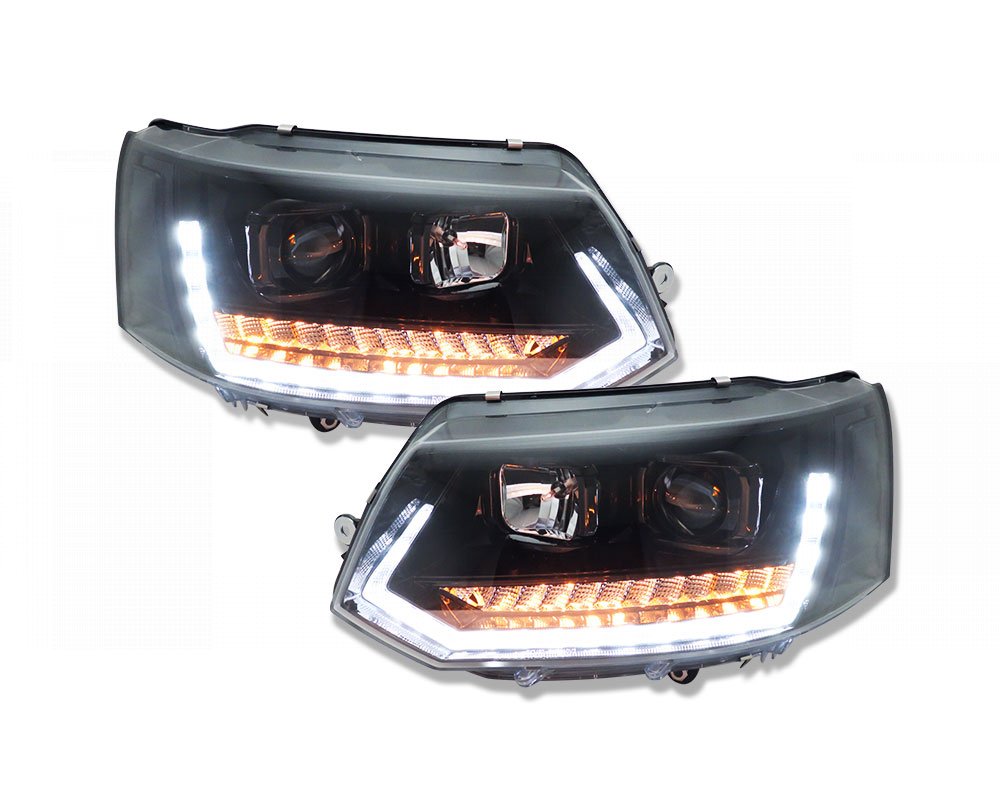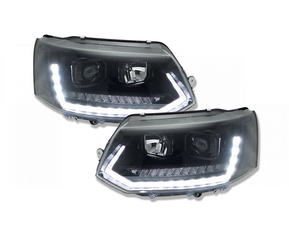 Přední světla LED s denními světly VW T5 09-14 s dynamickým LED blinkrem, černá lesklá