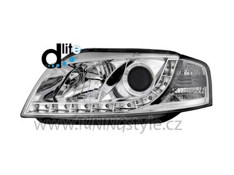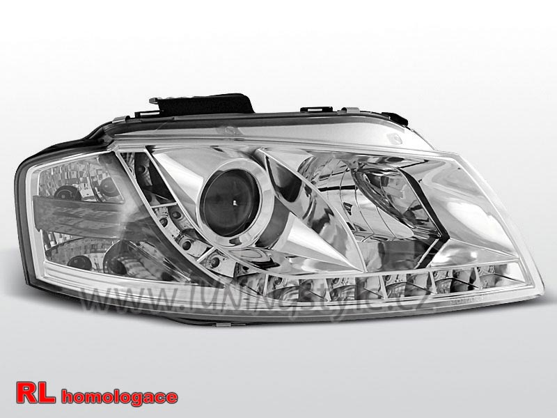 Přední světla s denními světly AUDI A3 8P 03-08 chrom RL