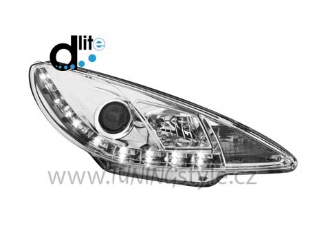 Přední světla s denními světly Peugeot 206 98-07 chrom RL