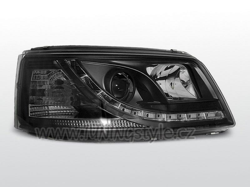 »  Osvětlení vozu  »  Světla a čirá optika  »  Přední světla  »  Přední světla s denními světly RL VW T5 03-10 černá
