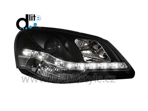 Přední světla s denními světly VW Polo 9N3 05-09 černé RL valeo