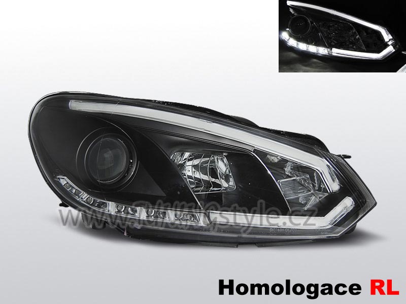 Přední světla s LED denními světly, TubeLights VW Golf VI/6 08-12 černá