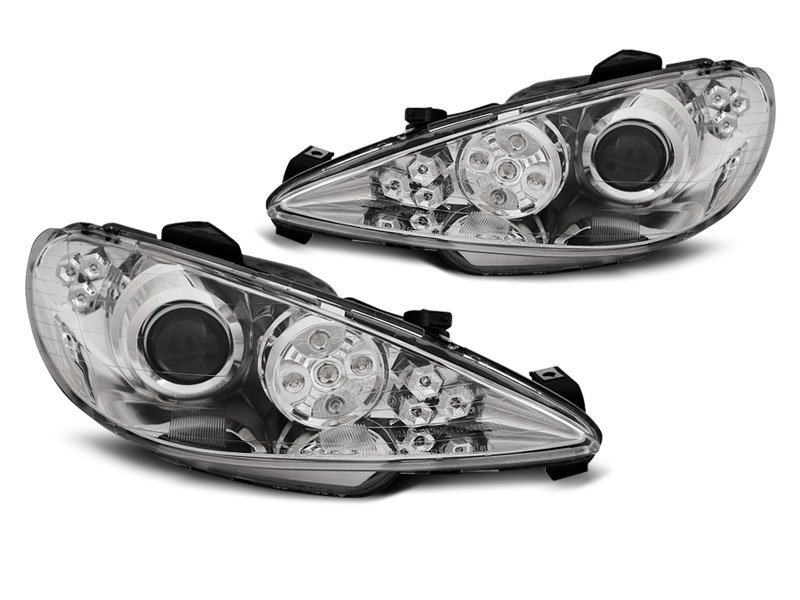 • Přední světla s LED, LED blinkrem, Peugeot 206 02- chromová