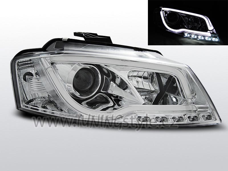 • Přední světla s LED TubeLights denními světly Audi A3 8P 08-12 chrom