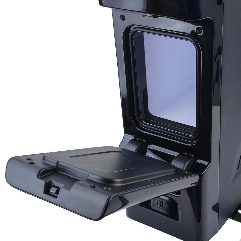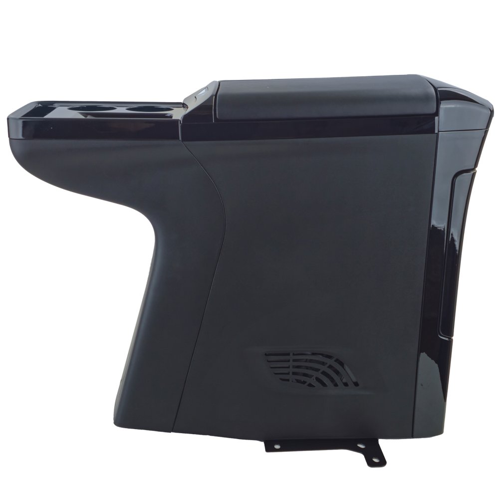 Vrcholem je integrovaná kompresorová chladnička se třemi nastavitelnými úrovněmi nebo dokonce možností jejího vypnutí. Je umístěna v zadní části konzole, aby si ji mohli sami obsloužit i cestující vzadu.