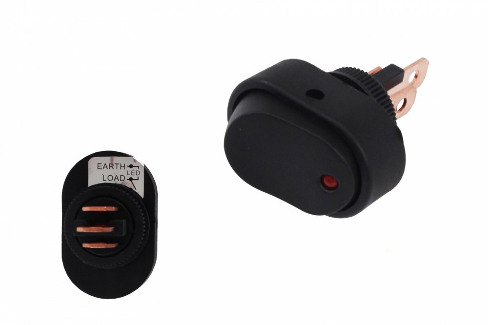 Univerzální přepínač typu oval. Napětí 12V, intenzita 20A. Signalizační dioda LED. Celý popis