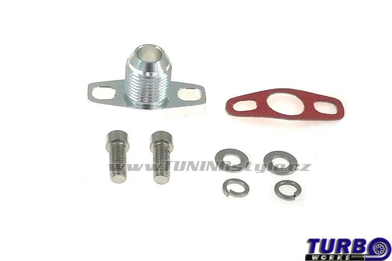 Příruba odtoku oleje AN10 GT15-GT35. Rozteč šroubů  41mm (+/- 3mm). Výrobce TurboWorks.     Celý popis