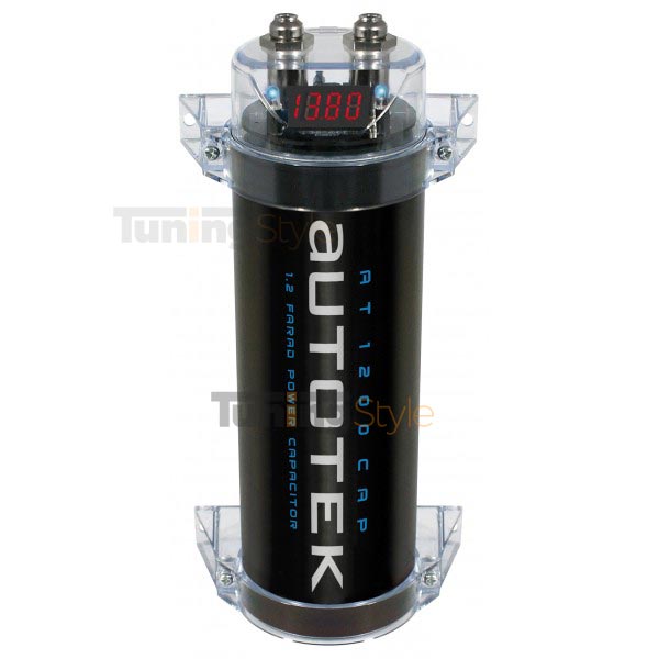 1,2 Faradový kapacitor 1,2 Faradový kapacitor Autotek s třímístným digitálním voltmetrem s červeným podsvícením. Sada obsahuje připojovací držáky. Rozměry: 125 x 76 x 260 mm