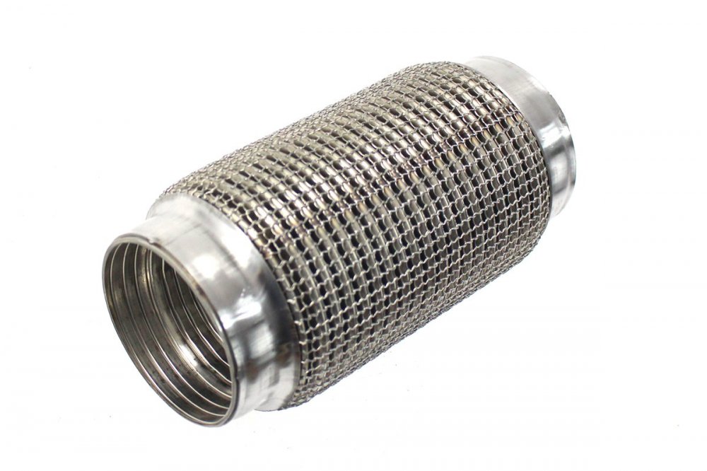 Zesílený průžný díl výfuku vyrobený z nerezové oceli.