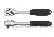 Ráčna 1/4"(6,3mm) s přepínací páčkou, plastová rukojeť, délka 146mm, ráčnový mechanismus s 72 zubu, vyroben z kvalitní chromvanadiové slitiny oceli splňující normou DIN 3122.