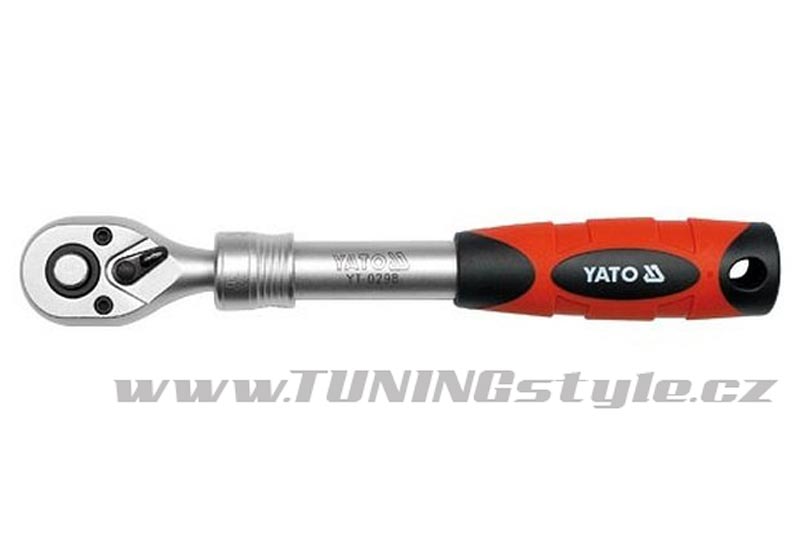Ráčna teleskopická s plastovou rukojetí 3/8"( 9,5mm) s přepínací páčkou, délka 215-315mm, ráčnový mechanismus s 72 zubu, vyroben z kvalitní chromvanadiové slitiny oceli CrV6135.