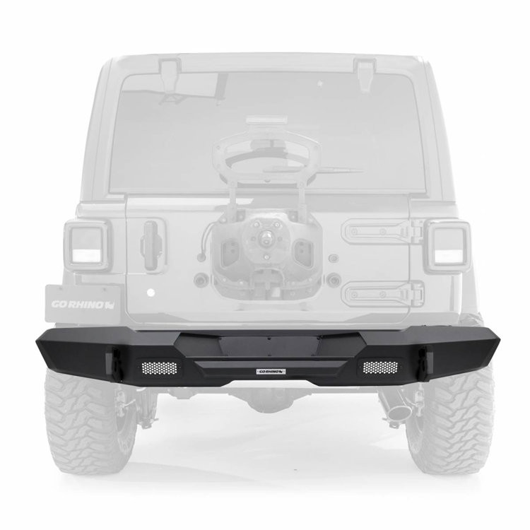 Full featured full width bumper installs quickly and easily Full width bumper features wide corner end caps Wide corners provide safe step area when accessing roof racks-perfect for overlanding and camping Compatible with factory hitch with modifications Allows for installation of two clearance compatible flush-mount lights 1" thick steel shackle mounts with patented signature rhino horn ... Celý popis