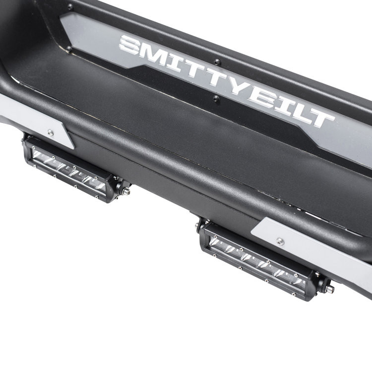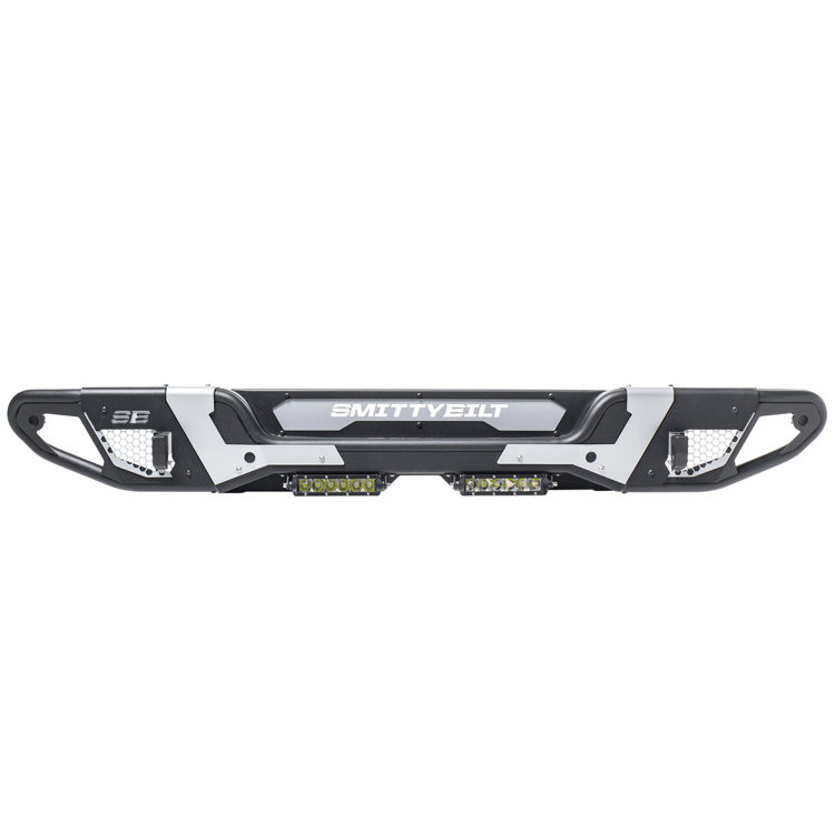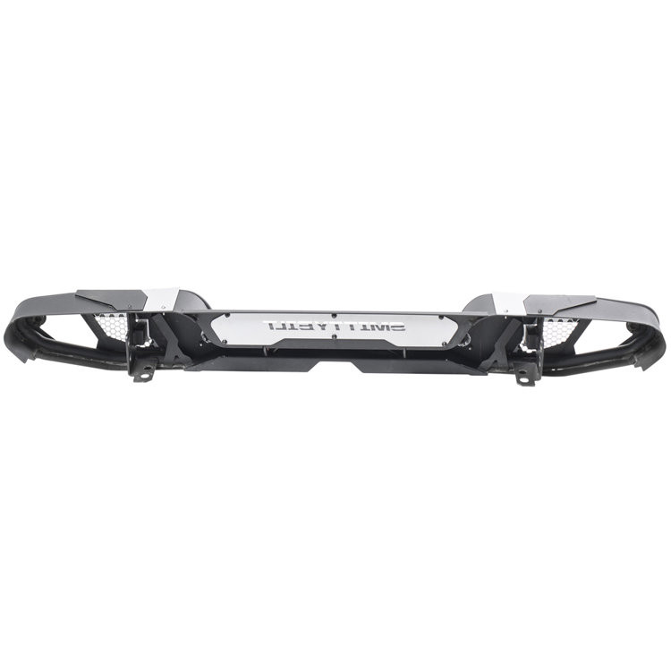 Unique and Aggressive stubby design Made from steel Formed and shaped with a robust appearance and solid performance 1,5"x120" wall structural tubing with 1/8" laser cut cold-rolled sheet metal D-ring recovery and jack points Optional auxiliary back up light mount brackets included Removable sheet metal for customization Robotically welded assembly for consistent penetration Celý popis