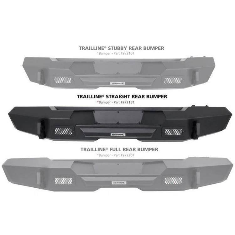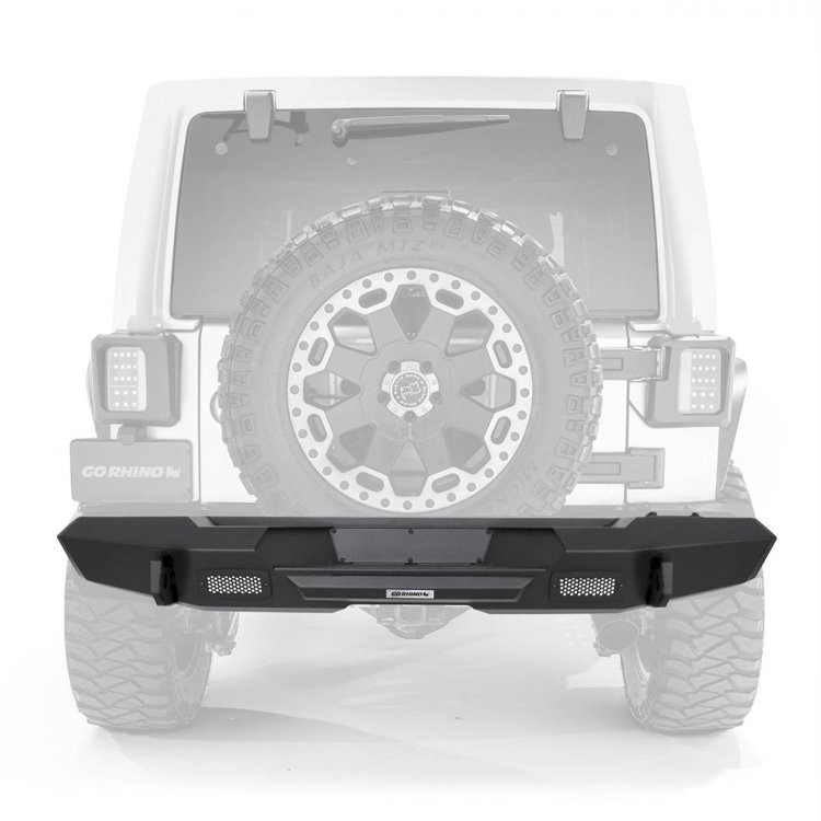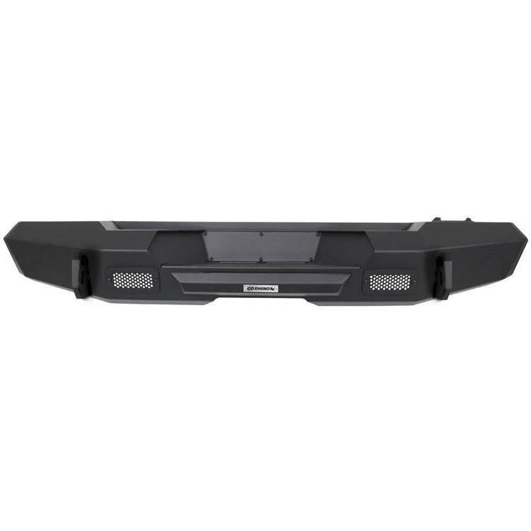 Straight style mid width bumper installs quickly and easily Compatible with factory hitch Allows for installation of two clearance compatible flush-mount lights (lights sold separately) 1" thick steel shackle mounts with patented signature rhino horn tow hook Center step area for enhanced vehicle access and to allow use of larger spare tires Black powder coated finish High-quality constru... Celý popis
