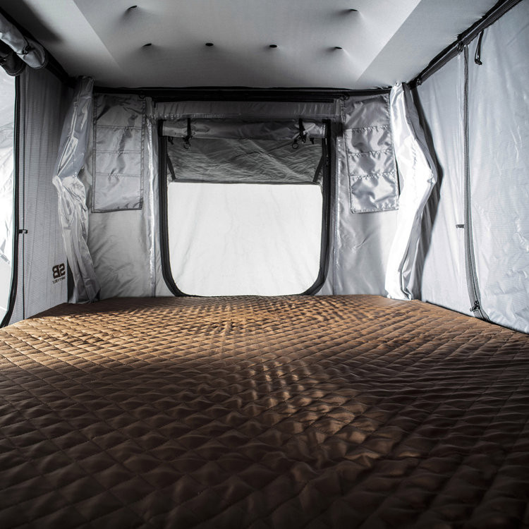 Low profile – aerodynamic slim ABS body Gusseted awnings on all 4 sides of the tent Extra long 92.5" telescoping ladder with a 300 lb capacity Ultra light weight – strong build with an aluminum frame Easy and instant set up with gas-assisted struts for easy opening and closing of the tent Stainless steel closures to keep the tent securely closed while traveling Interior features include d... Celý popis
