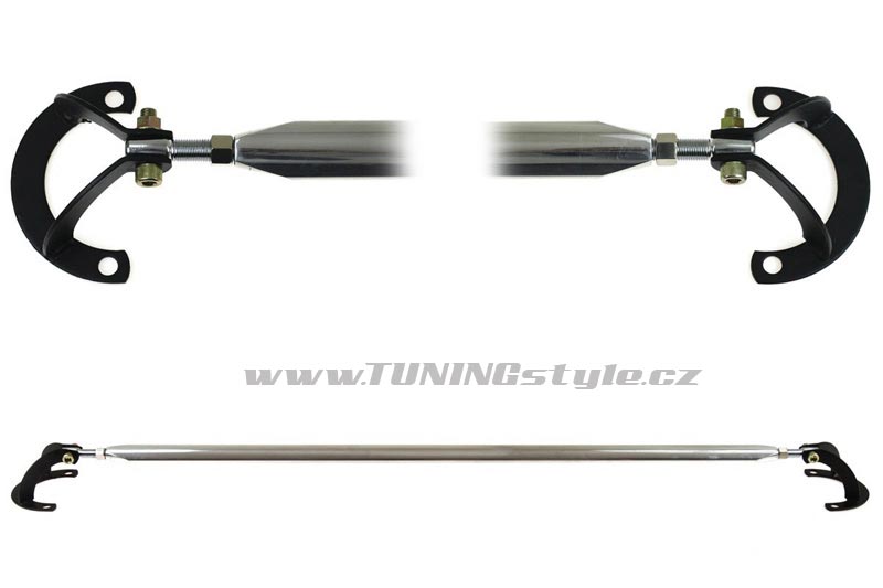Obsahuje pokročilou regulaci na obou strachách což umožňuje ideální dopasování a regulaci. Nikde nedajdete tak profesionálně vyrobený výrobek. Rozpěrka se montuje na misky tlumičů jedné osy. Ve výsledku je auto pevnější. Karoserie auta v hodně menším stupni podléhá deformaci způsobenou přez síly působících na vůz.Menší stupeň deformace způsobuje lepší přeciznost řízení.