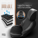 Výrobek je vyroben z nejkvalitnějších potahových látek. Kombinace nejlepších materiálů a vysoká pozornost k detailu při výrobě zajišťují exkluzivní vzhled a mimořádnou odolnost, stejně jako vynikající ochranu sedadel proti nečistotám a oděrkám.