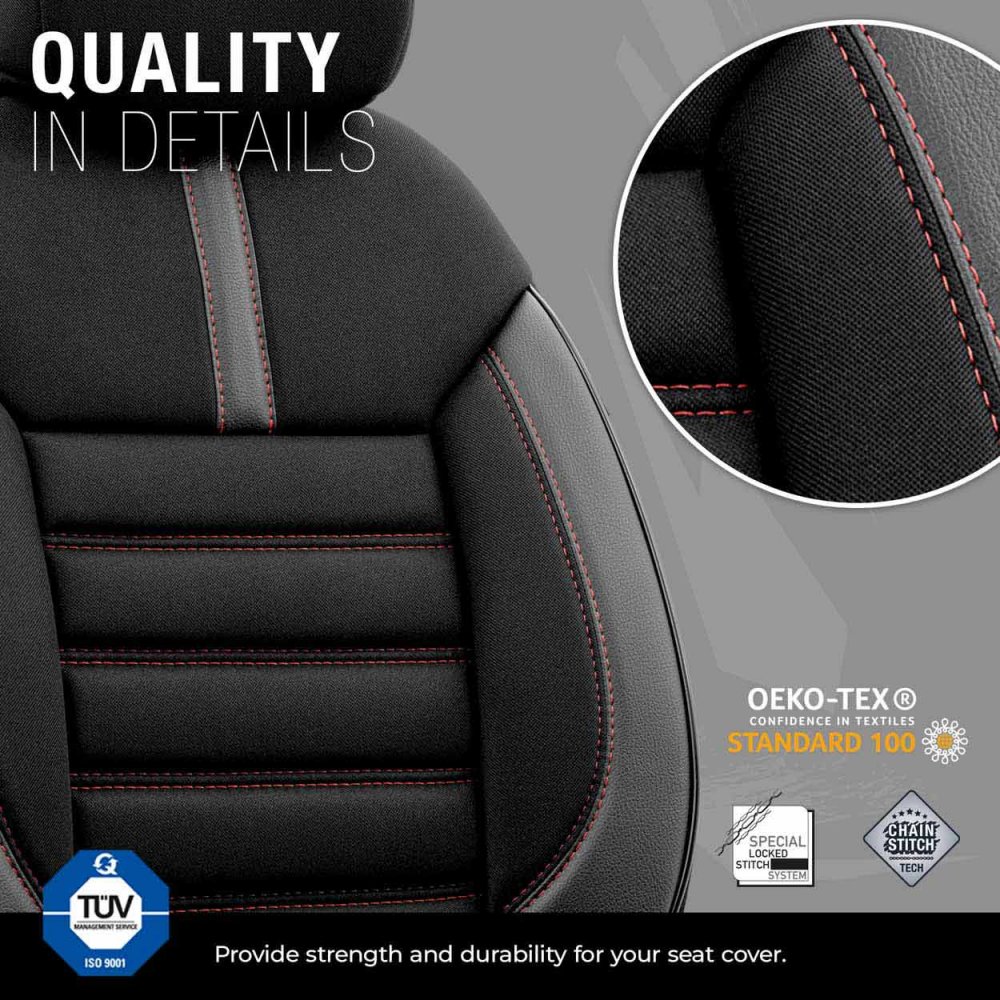Výrobek je vyroben z nejkvalitnějších potahových látek. Kombinace nejlepších materiálů a vysoká pozornost k detailu při výrobě zajišťují exkluzivní vzhled a mimořádnou odolnost, stejně jako vynikající ochranu sedadel proti nečistotám a oděrkám.