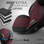 Výrobek je vyroben z nejkvalitnějších potahových látek. Kombinace nejlepších materiálů a vysoká pozornost k detailu při výrobě zajišťují exkluzivní vzhled a mimořádnou odolnost, stejně jako vynikající ochranu sedadel proti nečistotám a oděrkám.