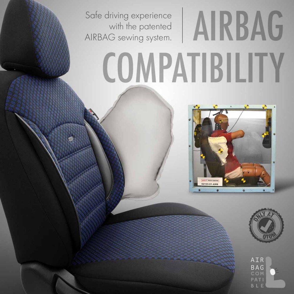 Standardní potahy mají certifikovaný AIRBAG šev, díky čemuž jsou vhodné pro vozy s bočními airbagy v sedadlech i pro standardní sedadla. Díky použití speciálního švu zcela pokrývají sedadla, aniž by narušovaly funkci AIRBAGŮ.