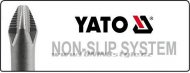 Kvalitní bity Yato se systémem Non-Slip, kdy je hrot bitu vybaven žebrováním zabraňujícím sklouznutí šroubu a zvyšujícím přenos kroutícího momentu.