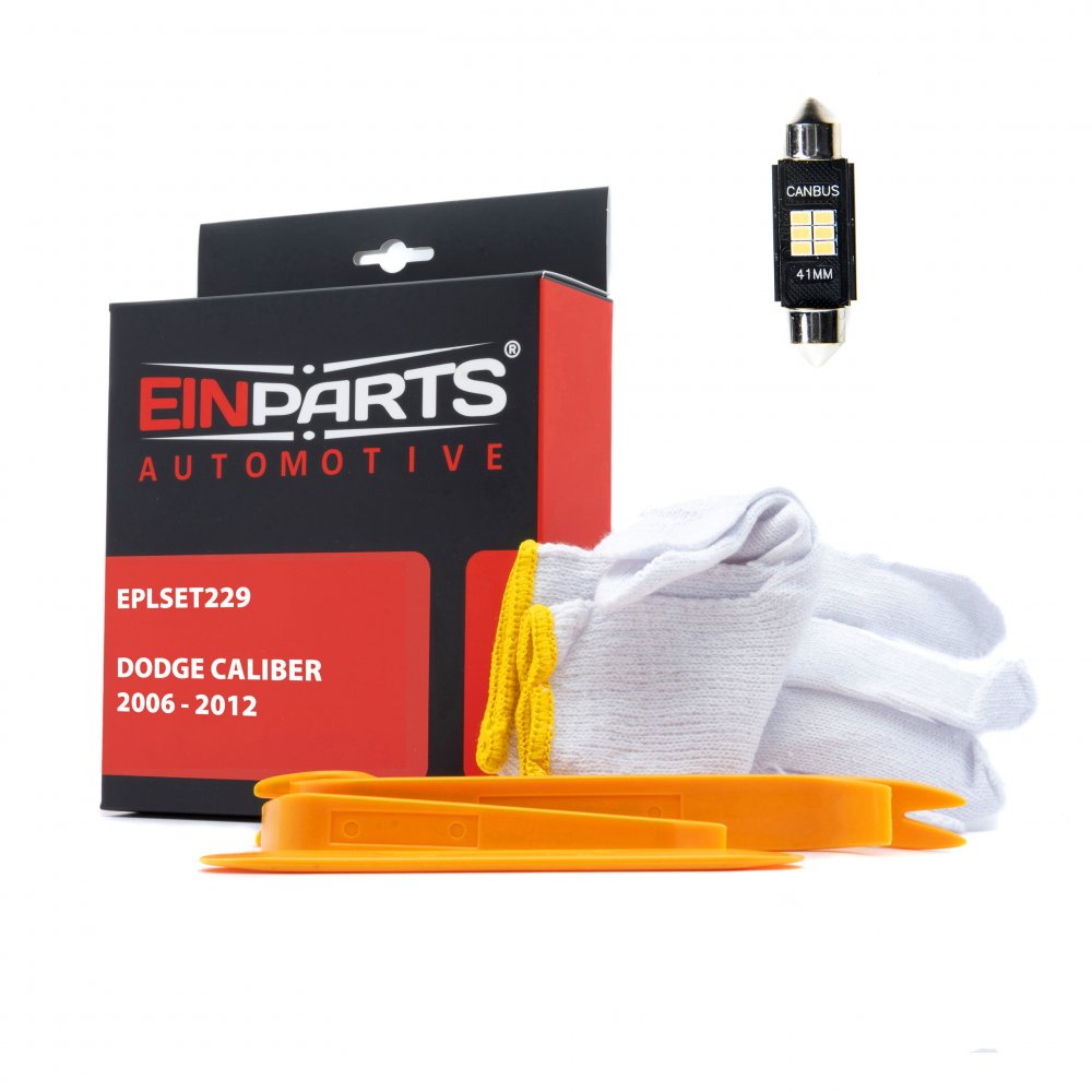 Sada LED žárovek do interiéru DODGE CALIBER (2006 - 2012) Specifikace: Barva světla: 6000K (studená bílá) Kompatibilita CAN-BUS: Ano, souprava nevyvolává chybové hlášení spálené žárovky Pracovní teploty: -40 °C až +50 °C Použití: 2 x Strop 2 x Dveře 1 x Kufr Obsah sady: LED žárovky Otvírák Rukavice Celý popis