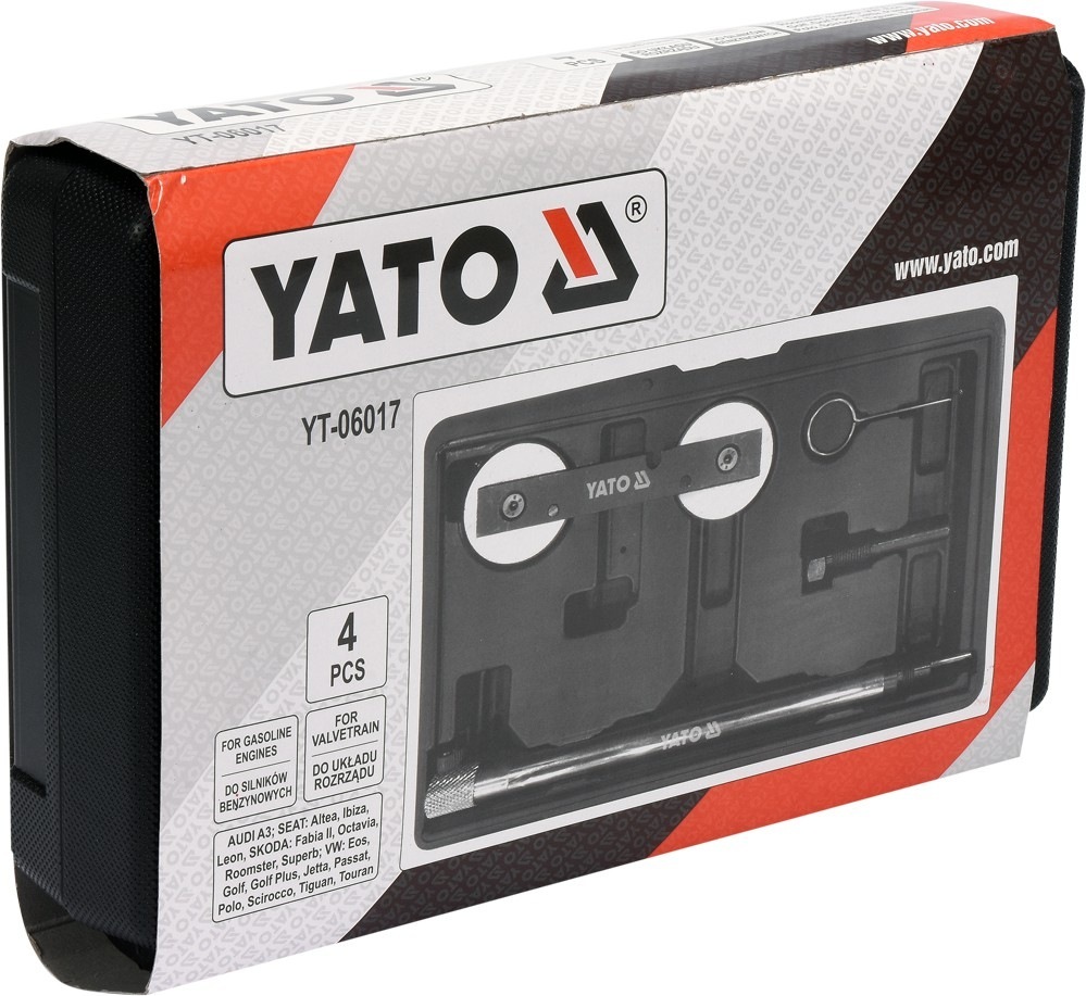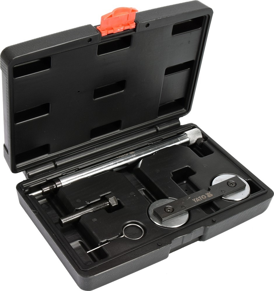 Profesionální 4-prvková sada pro servisování rozvodů motorů FSI a TFSI automobilů řady VAG. Sada obsahuje zařízení pro upevnění GMP, zařízení pro zajištění válečků, upínací válečkový trn a zajišťovací šroub. Určeno pro automobily s motory FSI + TFSI AUDI A3 SEAT Altea, Ibiza, Leon ŠKODA Fabia II, Octavia, Roomster, Superb VW Eos, Golf, Golf Plus, Jetta, Passat, Polo, Scirocco, Tiguan, Touran Celý popis