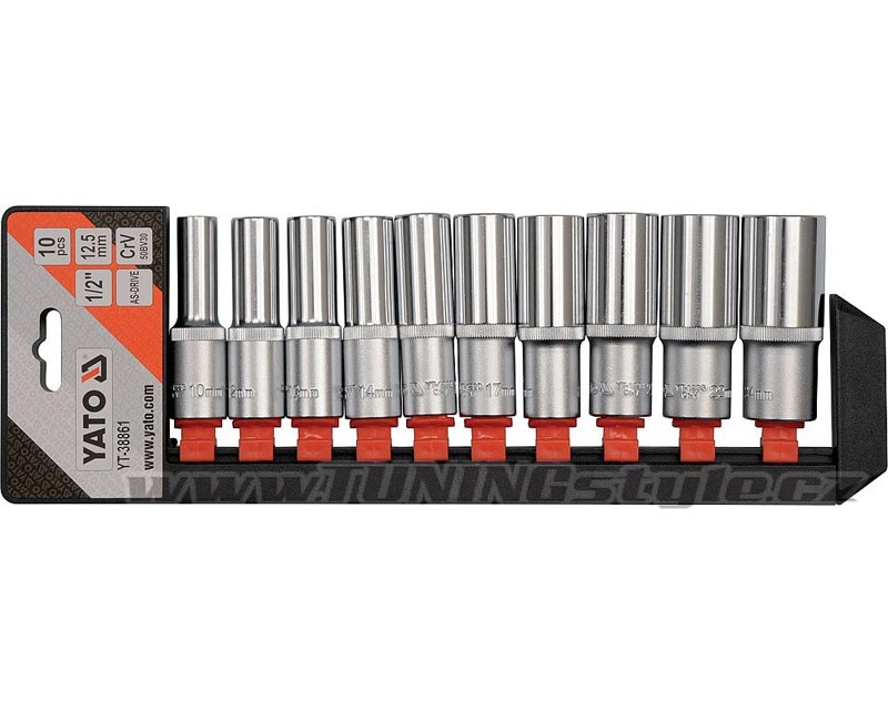 Sada šestihranných 1/2" nástavců YATO, hodících se především pro profesionální použití. Nástavce jsou zhotoveny z kvalitně opracované CrV oceli.