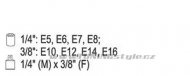 Sada specializovaných TORX nástavců pro automobilový průmysl, elektroniku a další mechaniku. Nástavce jsou vyrobeny z chrom-vanadiové oceli CRV 6150, která zajišťuje jejich pevnost a dlouhodobou životnost. Nástavce jsou spolu s adaptérem M1/4" x F3/8" přehledně umístěné na kovovém podstavci. Sada obsahuje nástavce 1/4": E5; E6; E7; E8 nástavce 3/8": E10; E12; E14; E16 adapt... Celý popis