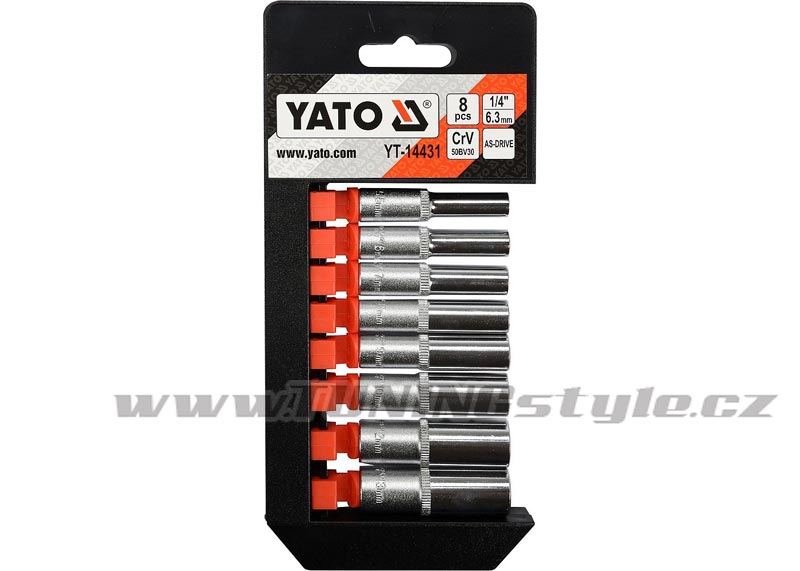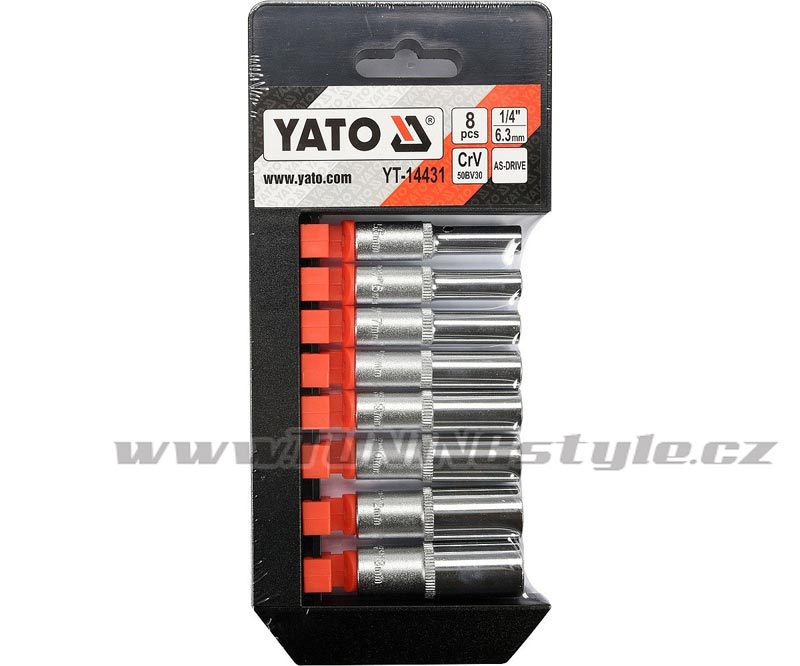 Sada šestihranných 1/4" nástavců YATO, hodících se především pro profesionální použití. Nástavce byly vyrobeny kováním, před kalením byly podrobeny kalibrací kontrolním zařízením s přesným měřením.