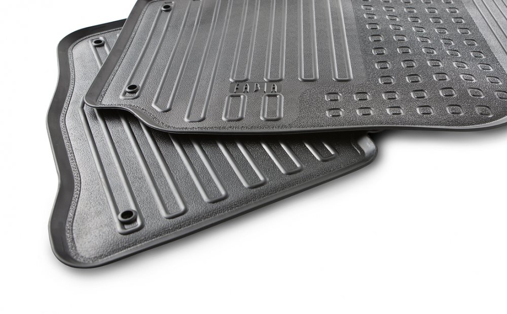 Sada obsahuje dva přední autokoberce s nápisem „Fabia“ a dva zadní bez nápisu. Jsou vyrobené z kombinace pryže a textilu, což je činí proti oděru a prodlužuje jejich životnost. Svým tvarem dokonale vyplňují prostor pod nohama cestujících, čímž dělají interiér vozu mnohem útulnější a pasažéři si tak užijí pohodlnou jízdu nehledě na počty ujetých kilometrů.