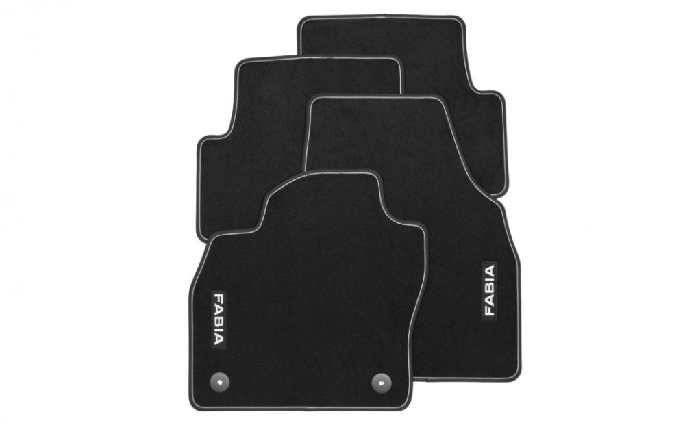 Textilní koberce Prestige s lemováním dvojitým nubukem (kvalitní broušenou kůží) a vyšitým nápisem Fabia dodají interiéru elegantní styl a útulnost. Vysoce kvalitní materiál s vysokou hustotou a gramáži je příjemný na omak i došlap a přispěje k celkovému komfortu cestování. Koberce navíc skvěle zachycují nečistoty a vlhkost. Chrání tak podlahu vašeho vozu a snadno se udržují. Jejich použití pomůže také omezit hluk při jízdě. Svým tvarem výborně vyplňují prostor pod nohama cestujících a k jejich komfortu přispívá také protiskluzový povrch.