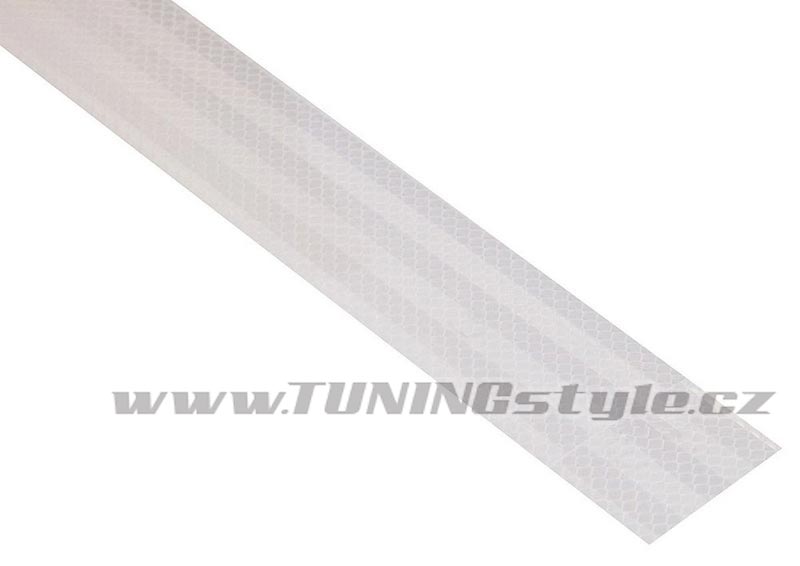 Samolepící reflexní pruh šířky 5cm, barevné provedení bílá. Vhodné např. pro zvýraznění obrysu nákladních vozidel, dodávek, přívěsných vozíků (boční a zadní strany), či všude tam, kde je nutné reflexní zvýraznění.