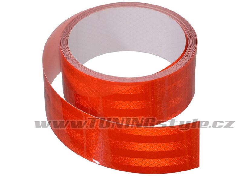 Samolepící reflexní pruh šířky 5cm, barevné provedení červená. Vhodné např. pro zvýraznění obrysu nákladních vozidel, dodávek, přívěsných vozíků (boční a zadní strany), či všude tam, kde je nutné reflexní zvýraznění.