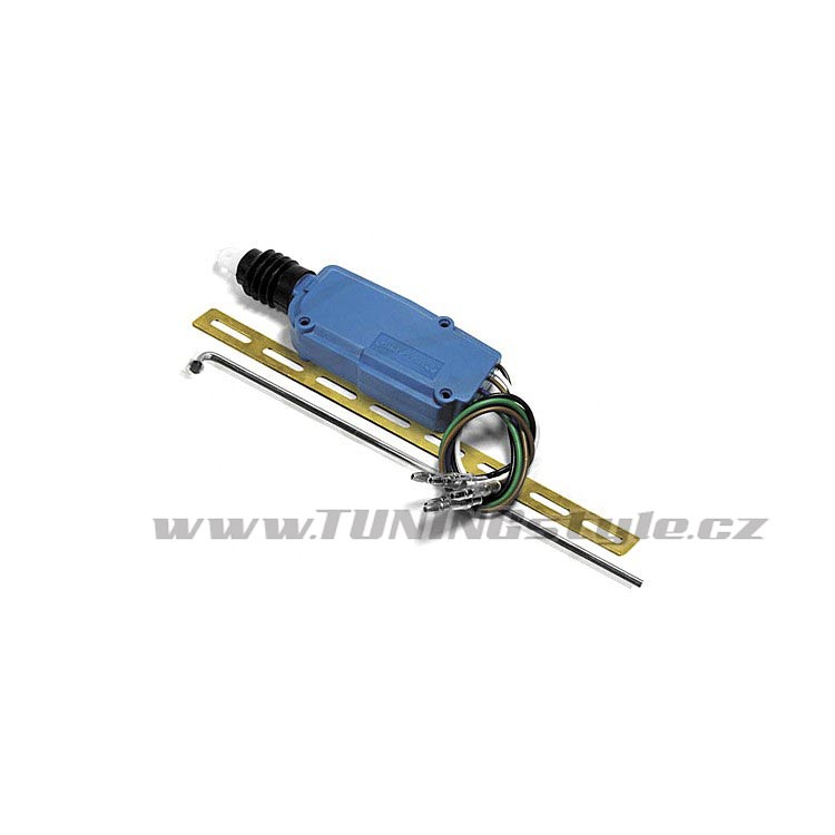 Servomotor centrálního zamykání 5-vodičový, otočná hlavice, výtlak 10 kg (pro těžké namáhání), sada táhel a spojovacího materiálu. Kryt servomotoru je vyroben z nylonového materiálu a spoje jednotlivých součástí servomotoru jsou nýtované.