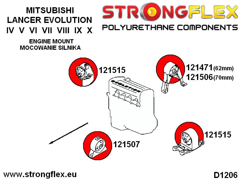 » Podvozky » Sportovní silentbloky » Silentblok horního uchycení motoru, pravá a levá strana 121515B Mitsubishi Lancer EVO IV - X