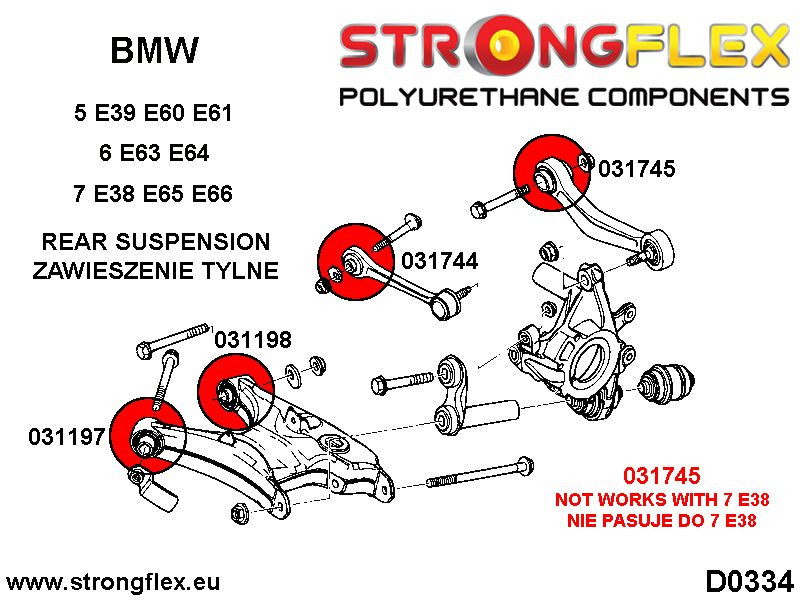 Kód produktu: 031198A Název : Silentblok zadního spodního ramene - zadní Vhodné pro : BMW 5 E39 95-03 BMW 5 E60/E61 03-10 BMW 6 E63/E64 02-10 BMW 7 E38 94-01 BMW 7 E65/E66 01-08 BMW X5 E53 99-06 BMW Z8 E52 99-03 E38 031198 - 12mm E39 Sedan 031198 - 12mm E39 Touring 031198 - 14mm E39 M5 & M-Suspension Package 031198 - 14mm E60 E61 & E60 M5 031198 - 14mm E63 E64 031198 - 14mm E65... Celý popis