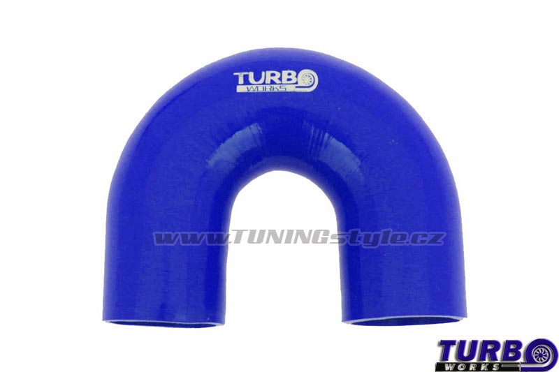 Silikonová hadice - koleno 180° od firmy TurboWorks. Hadice nejvyšší kvality se 4-mi vrstvami polyesterové textilie o tloušťce stěny 5mm. Testováno do tlaku 7 barů při teplotách od -50 do +260 stupňů C. Silikon nejvyšší kvality odolný proti působení různých olejů, maziv, phm a pod. Díky těmto parametrům ideální pro montáž např. intercoolerů či pro sání.